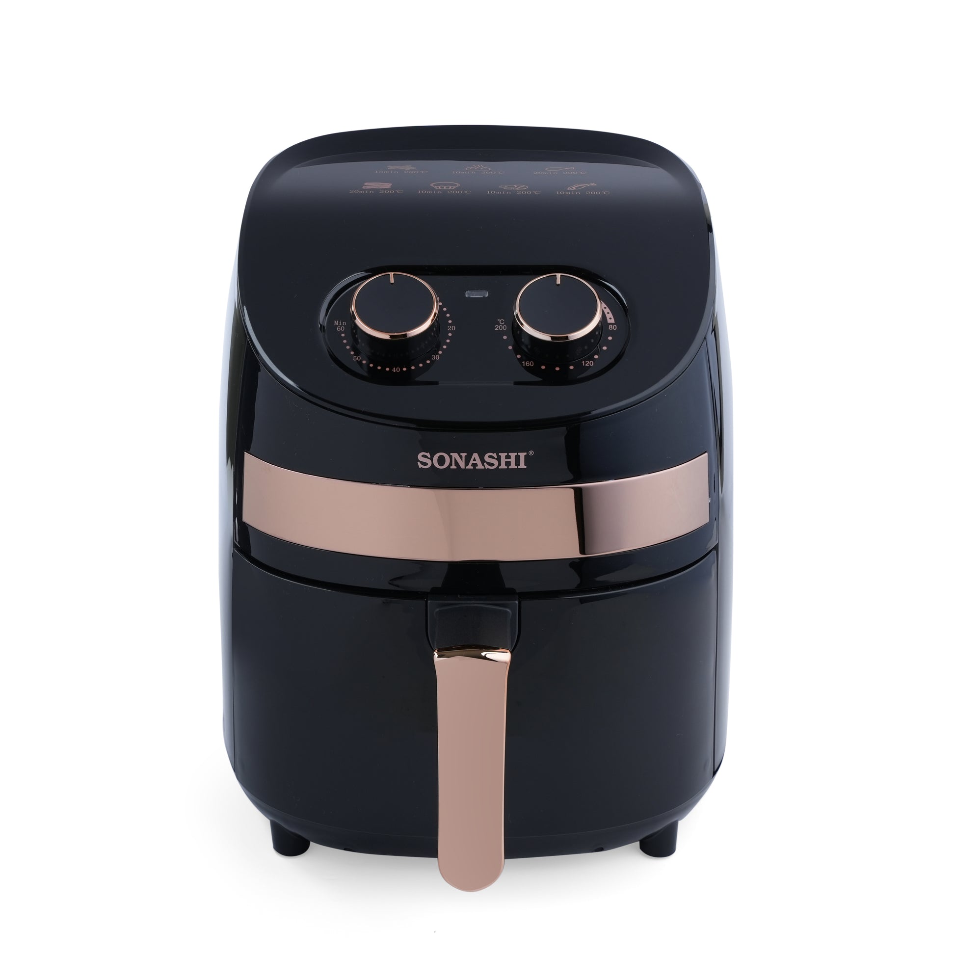 - MANUAL AIR FRYER: Make frying mouth-watering delights an undemanding task with the SONASHI manual air fryer. A must-have modern kitchen appliance, the fryer lets you cook non-greasy, guilt-free, and delicious air fry food with up to 80% lesser fat content.