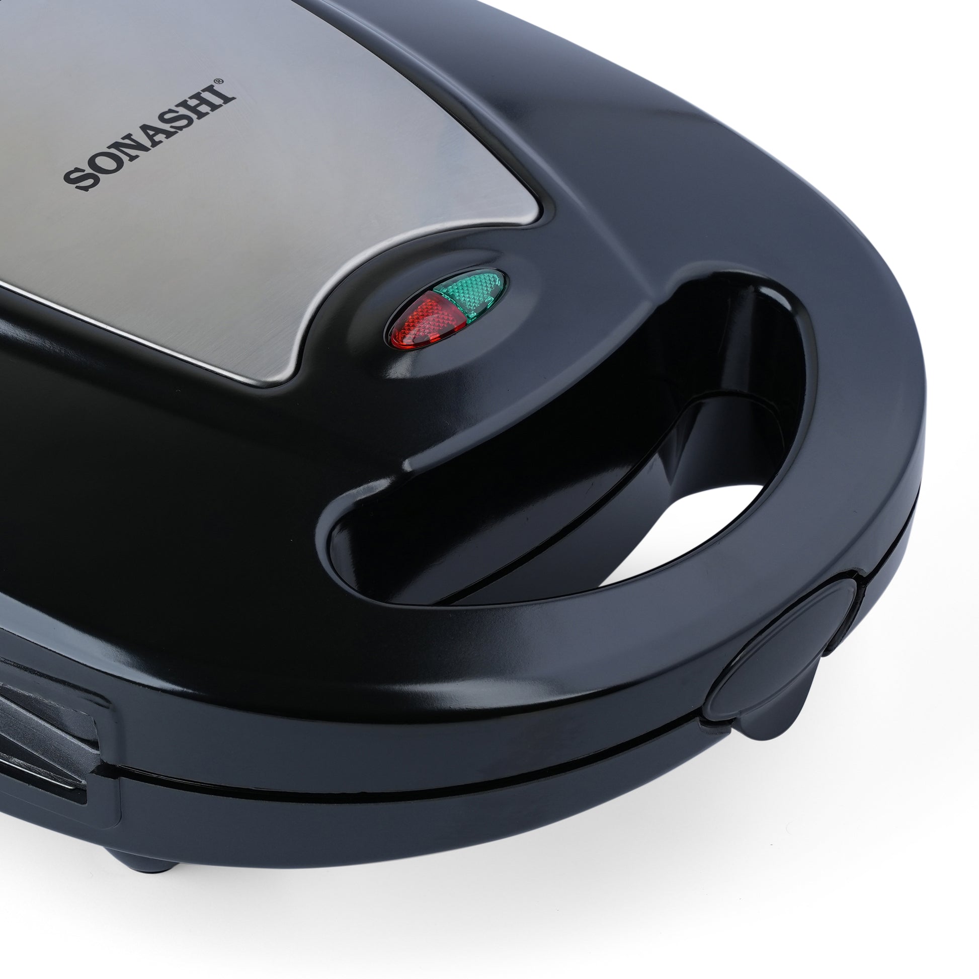 The SSM-862 features a bakelite housing with brushed stainless steel decoration, combining durability and elegance. The cool touch handle ensures safe and comfortable handling during use, allowing you to prepare a variety of snacks with ease.